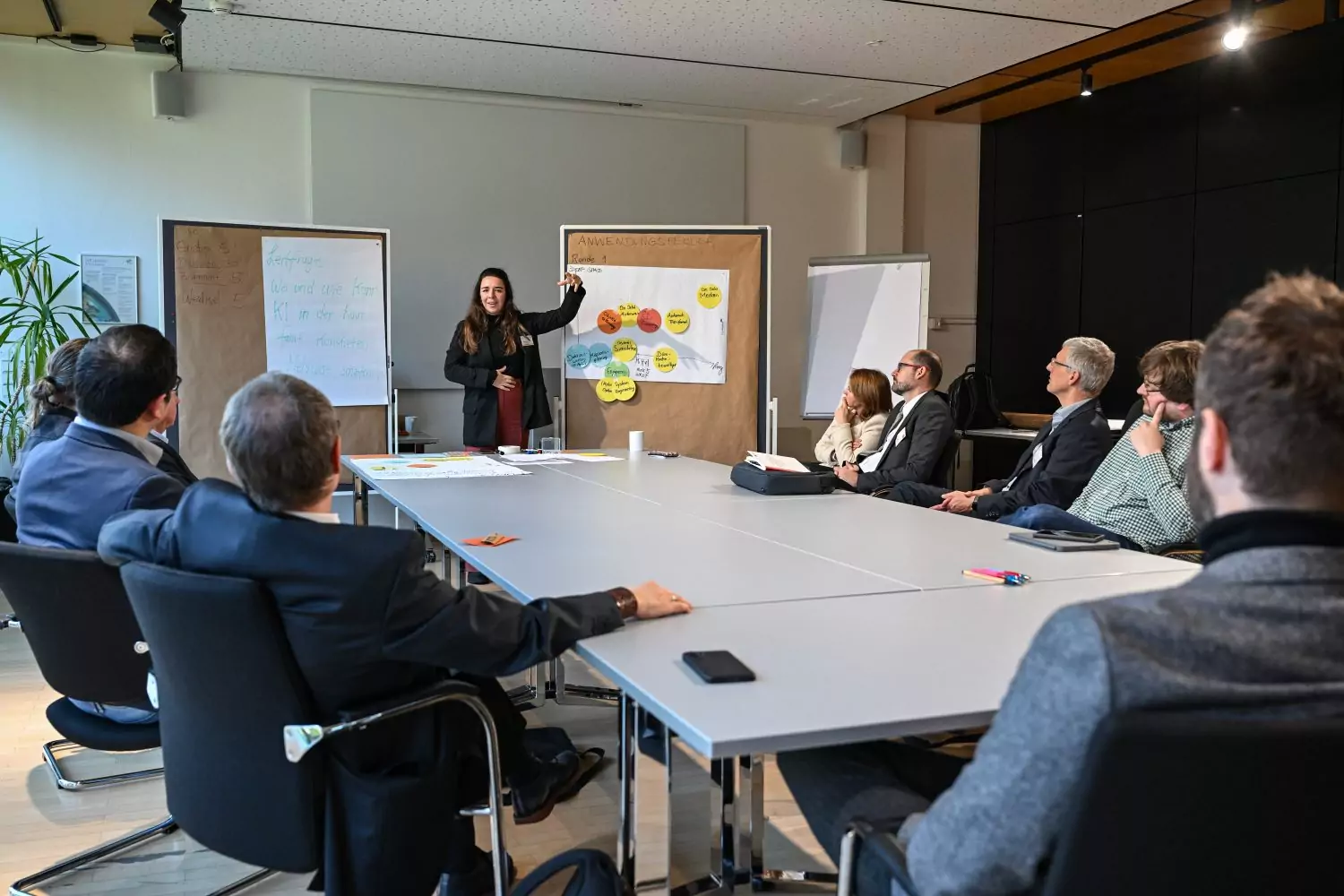Im zweiten Teil des Workshops standen interaktive Themeninseln im Mittelpunkt. In rotierenden Gruppen diskutierten die Teilnehmenden entlang der drei Schwerpunkte „Orientierung“, „Vertrauen“ und „Umsetzung“, wo KI echten Mehrwert schafft, welche Voraussetzungen für ihren erfolgreichen Einsatz notwendig sind und wie der Transfer in reale Missionen gelingen kann.
